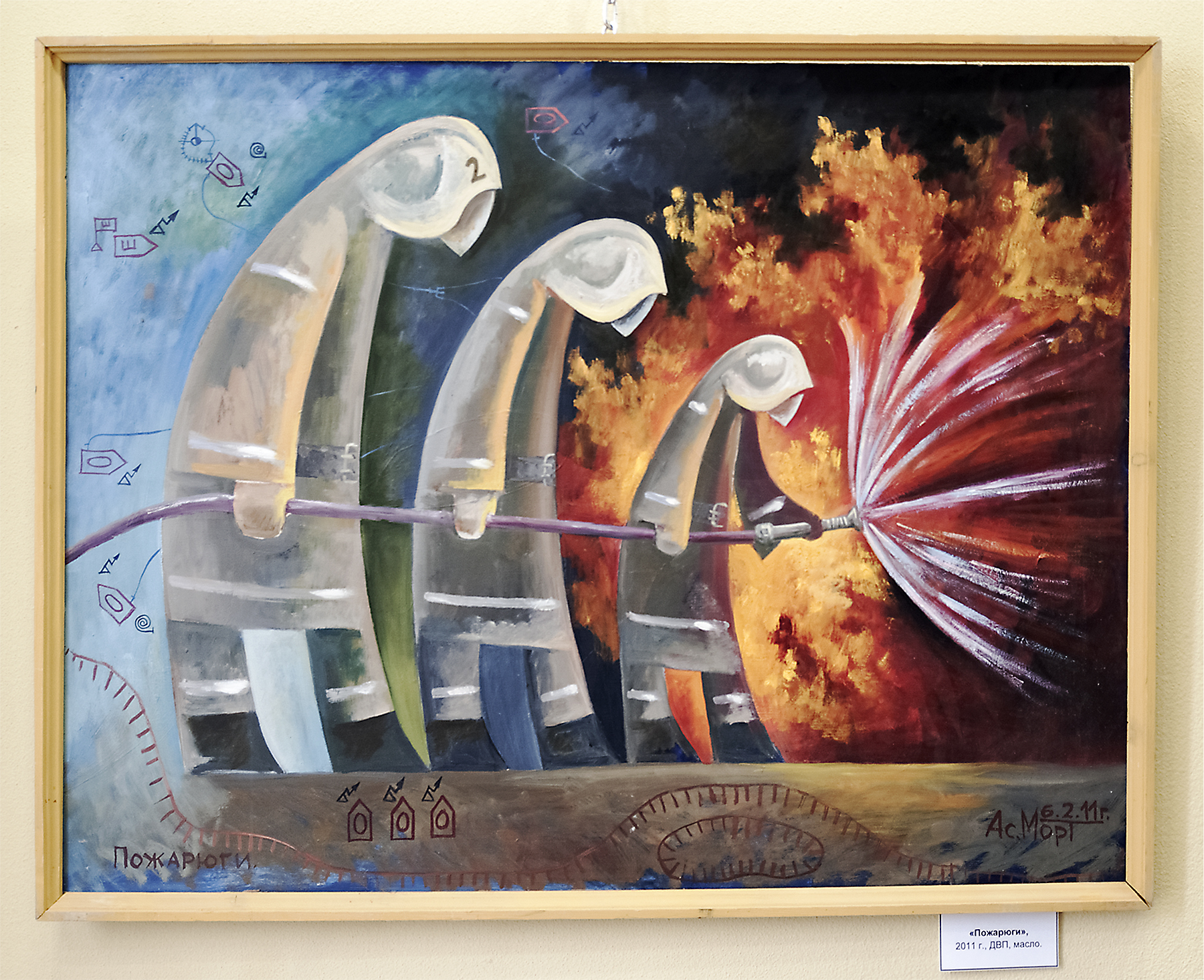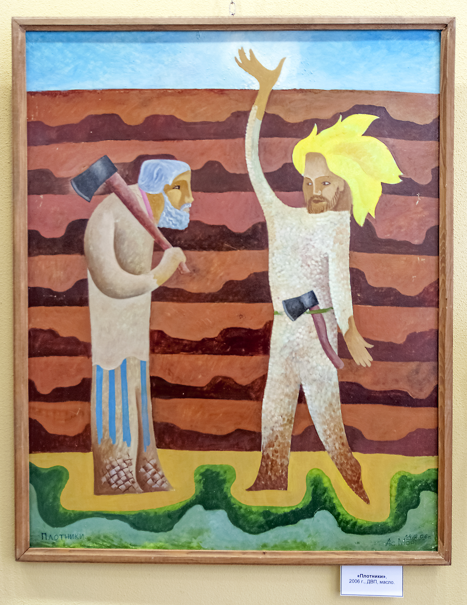 – Обычно пишу маслом и немного акрилом. – Ваш псевдоним – Ас морт, стиль трактуется как неклюжизм – необычно. – Псевдоним появился в 1992 году, в переводе с коми – «свой человек». Я коми по национальности. Но в силу обстоятельств – и личных, и исторических – забыл свои корни, свой язык. Стал так себя называть, чтобы напомнить окружающим, а в первую очередь себе, что родом из села Изваиль Коми края. Хотя бы таким образом пытаюсь не забыть свою малую родину. Что касается неклюжизма...