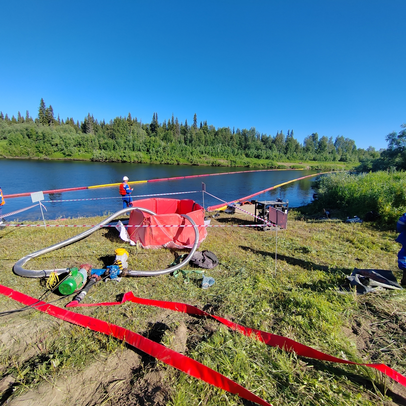 В тренировках приняли участие 110 сотрудников предприятия, использовалось более 50 единиц техники, в том числе плавсредства, установлено более 2500 м бонов.