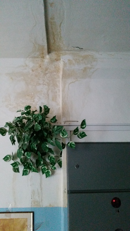Уже несколько лет в подъезде нашего дома по улице Куратова 15 течет крыша прямо в электрощит.