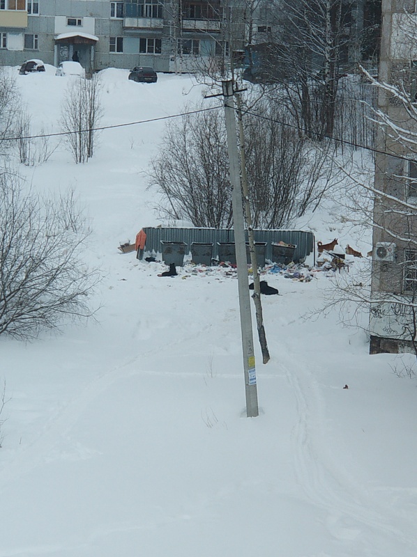 С начала мусорной реформы ситуация с вывозом и уборкой мусора на улице Советской в Ухте (контейнерная площадка у дома #11) стала гораздо хуже. Во-первых, мусоровоз стал реже приезжать, соответственно контейнеры часто стоят переполненные, мусор падает рядом. Во-вторых, дворники также реже стали убирать рядом с площадкой. В-третьих, разбросанный мусор привлекает бродячих собак, которых собирается здесь по 6- 10 животных. Рядом оживленные людские тропинки и дорожки к 21 школе.