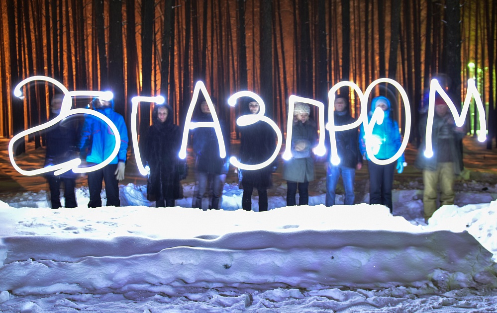 Несмотря на то, что в день съемки столбик термометра застыл на отметке минус 20 градусов, в назначенный час участники флэшмоба собрались в городском Детском парке. Рабочий процесс занял около полутора часов. Причем большую часть времени отняла предварительная подготовка – специалисты учились «писать фонариками» буквы и цифры в зеркальном отражении, стараясь при этом соблюдать пропорции и имитировать фирменный шрифт Компании. После небольшой репетиции отправились штурмовать сугробы и, сделав несколько дублей, получили световые картинки, которые, как надеются участники, станут прекрасным подарком к юбилею ПАО «Газпром» и родного института.