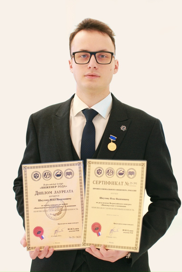 По итогам конкурса Илья Шкутов был удостоен двух наград: сертификата «Профессиональный инженер России» и диплома лауреата конкурса по версии «Инженерное искусство молодых» в номинации «Нефтяная и газовая промышленность». Звание присваивается сроком на пять лет и подтверждает высокий уровень компетенций специалиста, его вклад в развитие производственной системы предприятия и научную деятельность.