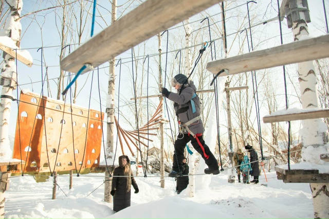 На полигоне в г. Ухте для работников и их семей организовано выездное спортивное мероприятие. Проверить физическую выносливость желающие смогли на туристической полосе препятствий.
