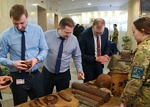 В аппарате управления в г. Ухте открылась историческая выставка, посвященная истории отечественного оружия – от артефактов времен Великой Отечественной войны до современных беспилотных технологий. Работникам представили свидетельства военных лет: личные вещи солдат Красной армии и вермахта, а также 25 предметов, найденных на полях сражений.